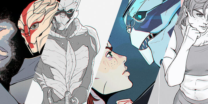 Components that significantly increase the time I spend on your commission warrant a Complexity Fee. Non-human characters (other than Garrus Vakarian), armor, small animals, elaborate clothing or props such as weapons etc all apply for this fee. Don't hesitate to ask if you have questions about this!As for backgrounds:Inky Artwork-tier commissions come with a standard simple background in a solid color. A transparent background is also possible.'Gently Rendered' and Painted Artwork both come with an accent background by default (i.e. a geometrical element, halftones, brushstrokes – depending on what I think works best) though you can downgrade this to a solid color if you'd prefer.You can upgrade accent backgrounds to a complex background, which is a proper, painted setting. The price depends on the complexity and detail of what you're envisioning. Please note that I take a stylized approach to these backgrounds and that there is a limit to their detail and realism. Look through my published art to see if my kind of background works for you!